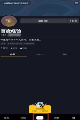 拍抖音怎么加歌词字幕1、首先在手机上打开抖音app,点击底部中间的“+”,如下图。