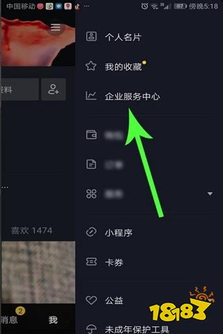 3、点击之后会弹出侧边菜单栏,找到并点击“企业服务中心”,如下图。