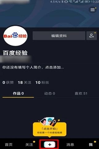 发抖音怎么配文字1、首先在手机上打开抖音app,点击中间的“+”如下图。