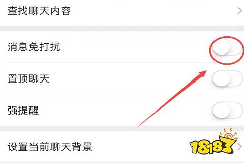 4、在聊天信息界面中将“消息免打扰”后方的开关点击打开即可。