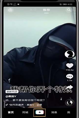 抖音照片不发布保存到相册方法1、首先在手机上打开抖音app,点击中间的“+”,如下图。