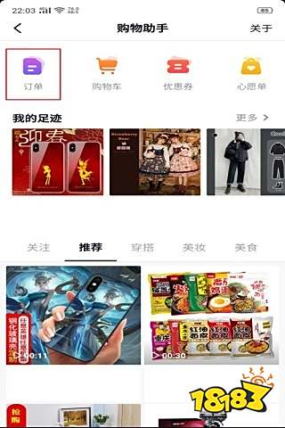 4、进入到购物助手界面之后就可以找到“订单”功能,如下图。
