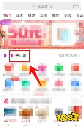 删除拼小圈好友的方法1、首先在手机上打开拼多多,点击首页的“拼小圈”,如下图。