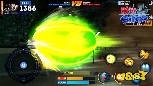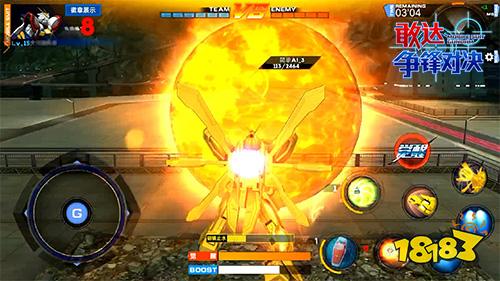 机体技能2更是简单粗暴,直接还原了地图炮攻击超级霸王电影弹!发射前机体会稍微硬直,然后全身霸体,并且形成一个多段的前突进的攻击,不仅动作霸气攻击效果还十分出众。而诸如神威剑等一干的著名招数,通过格斗派生都能展现出来,因此在原作还原度上是很令人满意的。神高达的必杀技为格斗捕捉系,发动后就会突进抓取对手,然后发动连续的格斗进攻,最后以石破天惊拳来收尾,整体动作流畅又帅气。必杀发动后不管之前明镜止水槽是否蓄满,都能保持金闪闪模式,这个必杀馈赠很是值得。
