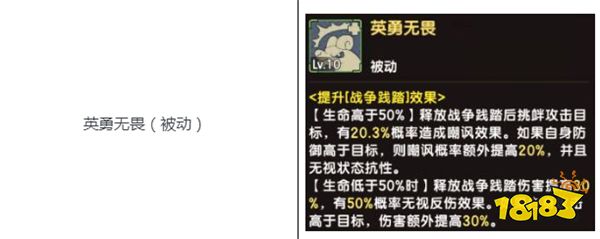 此技能也算是个多元化技能了。生命高于50%时带有嘲讽效果,自身防御比对方高的时候,嘲讽可以额外提升20%的概率而且无视对方状态抗性,对于羊年来说防御比对方高也是轻而易举。生命低于50%时,输出能力会更加的恐怖。但也要在自身攻击高于对方的时候才更强,而且有50%的概率可以无视反伤效果。