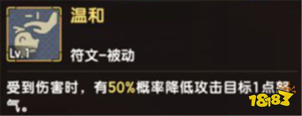 羊年的1怒技为单体输出技能,较为普通。附带降低目标防御的被动效果。技能伤害系数对于单体技能来说也算中规中矩,不为突出。