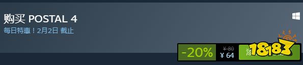 《喋血街头4》优惠现售64元,原价80,历史最低价。4574篇测评中88%好评率,特别好评。支持简体中文,特惠活动截止至2月2日。