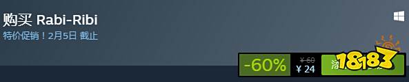 《Rabi-Ribi》优惠现售24元,原价60,历史最低价。7633篇测评中97%好评率,好评如潮。支持简体中文,特惠活动截止至2月5日。
