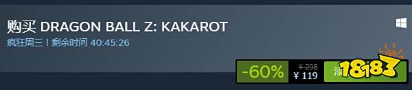 今天在Steam有一款漫改开放世界游戏《龙珠Z:卡卡罗特》进行疯狂周三特价促销,原价298元,现优惠价仅售119元,特价促销截止至2月6日。还原非常到位的漫改游戏,下面就来看一下这次折扣详情吧。