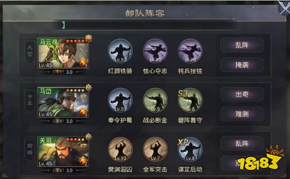 战法:全军突击+XP谋定后动;乱阵+难测