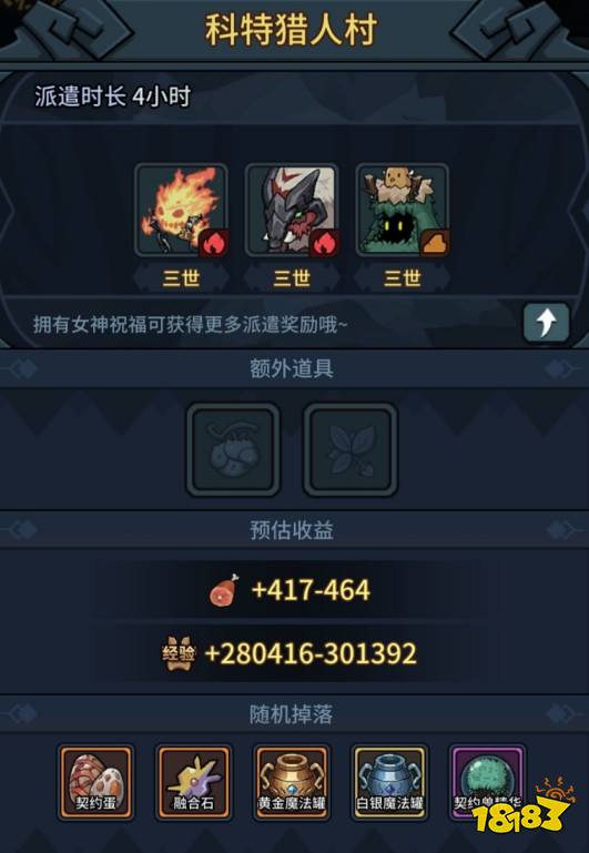 经过不断的派遣获得资源,契约兽同时会获得相应的契约兽经验,会造成等级不断提升,这时就可以做一件丧心病狂的事(杀兽取肉)——把专门用于派遣的契约兽分解掉,我们会得到兽肉,给契约兽喂食会获得经验。