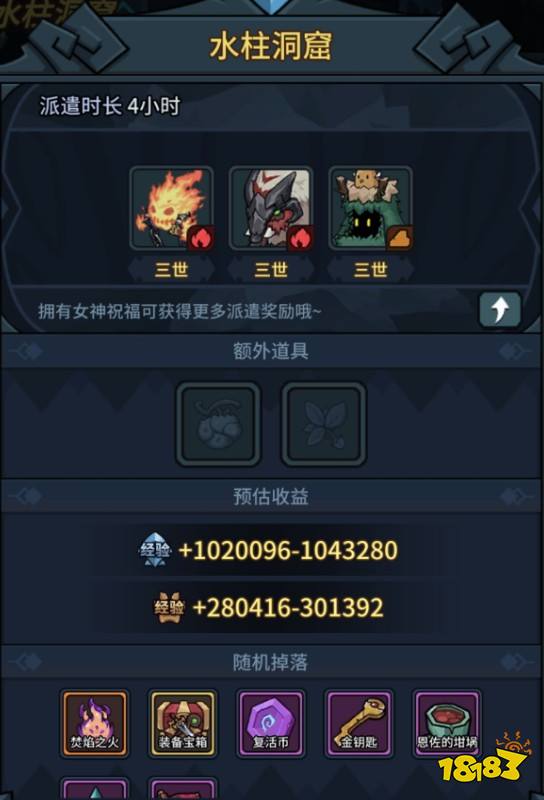 1号图主要获取经验资源(主人,契约兽都有),在前期70级之前建议主宠闲暇时间派遣以获得最高经验收益,快速达到70级。特殊道具有: