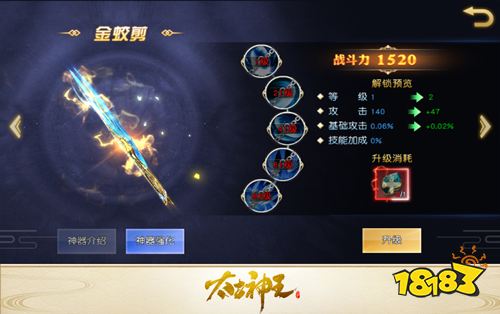 作为寄宿着蛟龙凶魂的杀伐利器,金蛟剪可以为玩家提供额外的攻击、基础攻击与技能加成,并且随着玩家对金蛟剪进行培养强化这些加成还会不断提升。