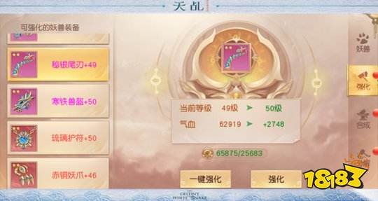 妖兽觉醒之后,我们还可通过特殊的妖兽装备提升属性。无论是妖兽装备的获取、强化还是合成,玩家都可配合个人喜好将妖兽培养成自己专属的独特伙伴,共同迎接《天乩》手游浩大仙侠世界中的重重考验。