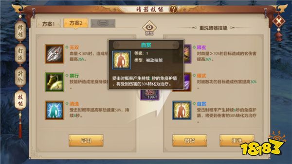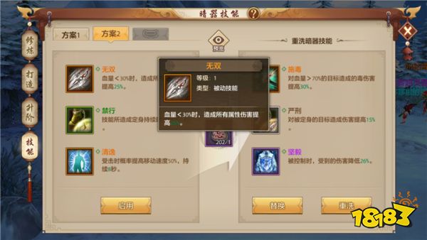 另外,提升封穴时间的暗器技能煞心,与提高对封穴目标伤害的暗器技能怒斩都是非常好用的暗器技能,现在暗器页不止一页,诸位少侠如果洗出这些暗器技能,都可以考虑留下来备用。