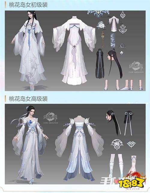 门派时装设计上的话也是独具匠心,白衫为底桃花隐浮期间,颇有国画水墨丹青的无限风韵。