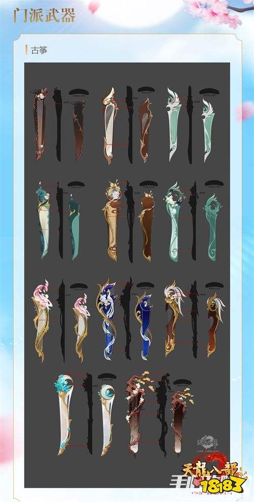 虽然新门派桃花岛是手持玉箫的形象,不过这个门派却是以古筝为武器进行攻守。所谓筝横为乐,立地成兵,实际上在冷兵器时代,古筝除了作为乐器娱乐之用外,还会被用作武器使用。秦筝张弦十二根,进攻时可以挥打敌人,防守时可以作为盾牌抵挡刀枪和弓箭的攻击。为满足更多玩家的需求,《天龙八部手游》也是特别设计了多款古筝武器外观,届时可供玩家个性选择。