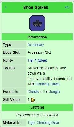 泰拉瑞亚钉鞋是攀岩必备的佳品,拥有一双钉鞋可以助我们在攀岩的路上事半功倍。下面为大家介绍的就是泰拉瑞亚钉鞋的图鉴及属性介绍,一起来了解一下吧。