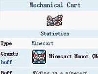 泰拉瑞亚机械矿车是专家模式下的特殊矿车,在专家模式下建造,完成后可以在任意世界使用。机械矿车的速度超越大部分的移动手段,在4秒后达到最高速度102。