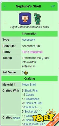 在泰拉瑞亚手游中,海神贝壳能让玩家在水中变身鱼人,获得水下行动能力。那么在游戏中海神贝壳该怎么获取呢?下面小编带来泰拉瑞海神贝壳攻略,对此有兴趣的小伙伴就进来看看吧!