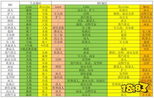 NPC喜好表