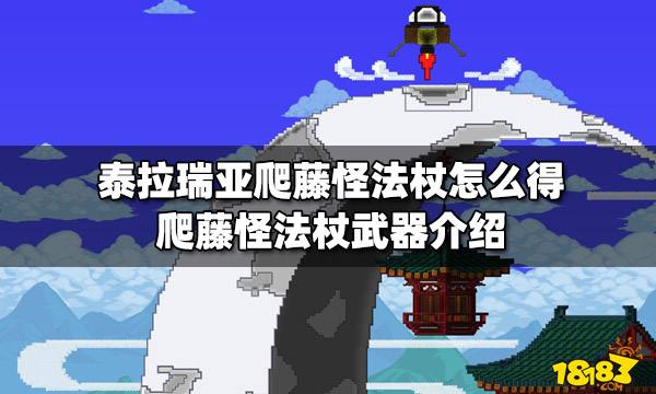 泰拉瑞亚爬藤怪法杖是肉山后的一种魔法武器。攻击时候会产生一道诅咒焰墙,敌怪穿过的时候会受到伤害,1点4版本更新后 爬藤怪火焰高度提升了 50%,玩家可以通过击杀腐化宝箱怪有 20% 的几率掉落。