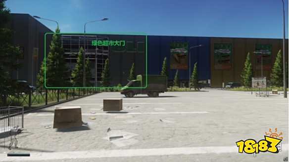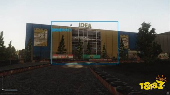 这里以正门为中间,左边为蓝色超市,右边为绿色超市。