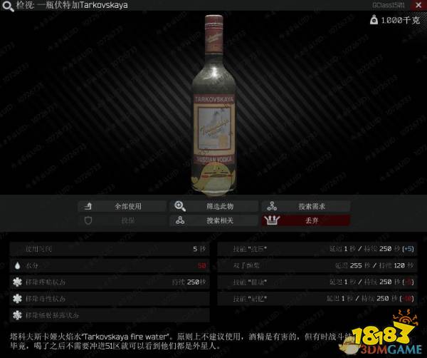 《逃离塔科夫》中的一瓶伏特加Tarkovskaya是作用繁多的酒类饮料,很多玩家都不太清楚这种酒的作用效果是什么,今天小编就给大家带来玩家“志存心悉”分享的一瓶伏特加Tarkovskaya作用介绍,一起来看看吧。