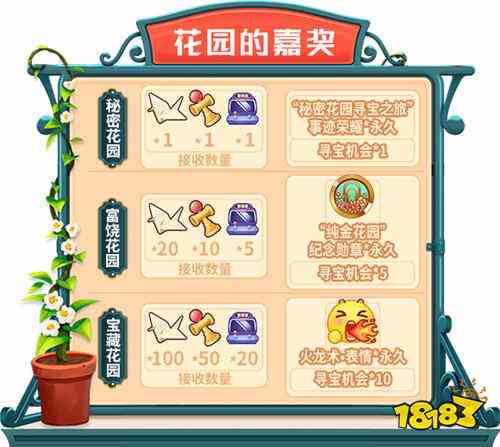3. “花园的嘉奖”每种奖励每位玩家在活动期间最多领取一次;