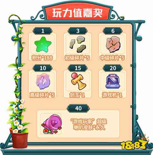 当“玩力值”累计达到相应条件后,即可领取以下奖励: