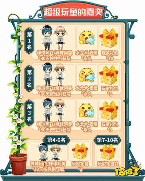 活动结束后,玩力值最高的前10名玩家将能够获得“超级玩童的嘉奖”: