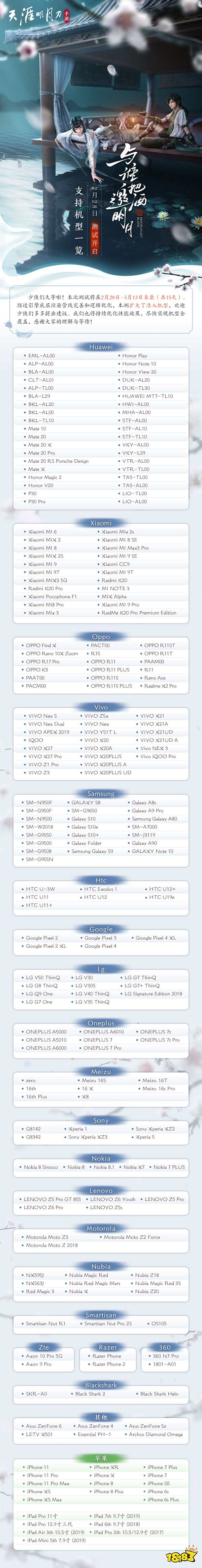少侠们久等啦!不负初心、潜心打磨,天刀手游计划将于2月28日-3月13日开启“与谁把酒邀明月”测试,诚邀少侠们共赴春日之约!
