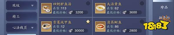 3)琅纹:琅纹所有服务器价格都差不多,距离66还有一周的时间,我们可以先准备好5孔的6级紫色琅纹,在开66级的时候一定会涨价;小技巧:如果市场价格如下,你缺少【天】云的话,千万不要直接购买天云,买2个【天】雪熔炼再兑换【天】云反而更便宜,还有几率出金色琅纹。但是真缺钱其实紫色琅纹功力加成基本是一样的,可以不着急用【天】云;