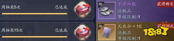 4)天衣礼券:碎银性价比最高的获取办法,其实是抽衣服!5个天衣令就可以换10W碎银,每周15连抽送15个天衣令的性价比很高,减去每日一次免费次数,一周一定要再买8次凑成15次,其性价比比招财进宝还要高,抽到衣服那是锦上添花,共花费480绑点。