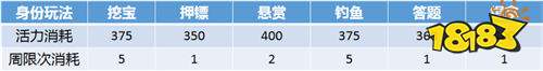身份类行侠需要消耗活力和对应身份玩法的周限次,根据身份不同,对应的消耗的活力和次数也不同。