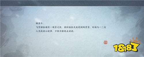 这个地方是飞雪滩边的一座小亭,旁边有桥有湖,进入其中就可以看到描绘的交互键了(实在找不到的看看右上角小地图)