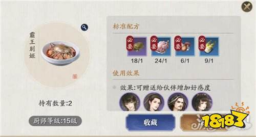 天涯明月刀手游增加角色好感度的方法有很多,但是相对来说比较简单的方法就是通关制作菜品来增加好感度,即便是npc也难以抵抗美食的诱惑,其中霸王别姬便是不错的选择,下面小编为大家带来了,天涯明月刀手游霸王别姬菜谱, 霸王别姬做法攻略。