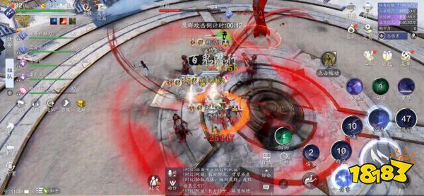 狂风卷:阿暖释放剑刃风暴,造成全屏伤害,此技能为紫圈技能,需要少侠第一时间格挡。下面便是错误示范,硬吃技能伤害还是很高的。