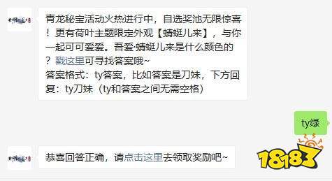 青龙秘宝活动火热进行中,自选奖池无限惊喜!更有荷叶主题限定外观【蜻蜓儿来】,与你一起可可爱爱。吾爱·蜻蜓儿来是什么颜色的?戳这里可寻找答案哦~