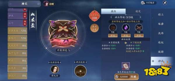 4.神兵提升:血衣蛊神兵可通过副本以及活跃度白嫖,神魄兑换仅需50个,少侠门可提升100点以上功力。