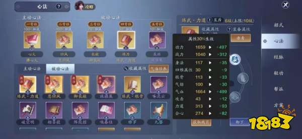 3.200页的时候可以点到6级2下,放在30%的位置算上合成和突破可提升100点功力,增加7.5%的力道和7.5的会心率。