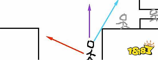 一直慢慢瞄着右边墙角的地方(蓝线),但是我玩了很多场都会发现大部分人是没有这个意识的。
