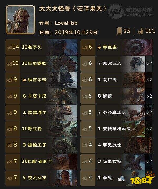 怪兽阵营相对其他阵营要友好得多,牌组中诸如巨型蜈蚣、巨魔砸砸、夜之女王、可以通过暂时使用新手卡牌代替,铜卡部分只需要碎片合成就可以了。而且大大怪兽简单粗暴很容易上手,也有着不错的胜率。