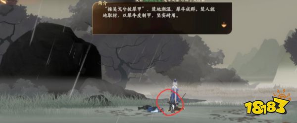 犀甲:往右划拉,划过大石头,在单独倒下的士兵尸体旁。