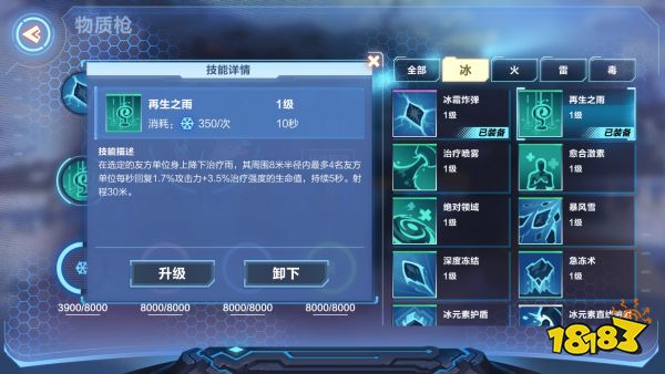 再生之雨在队友血量下降时使用,可以群体回复,提升生存能力,建议选择近身冰属性武器,可以快速击杀。