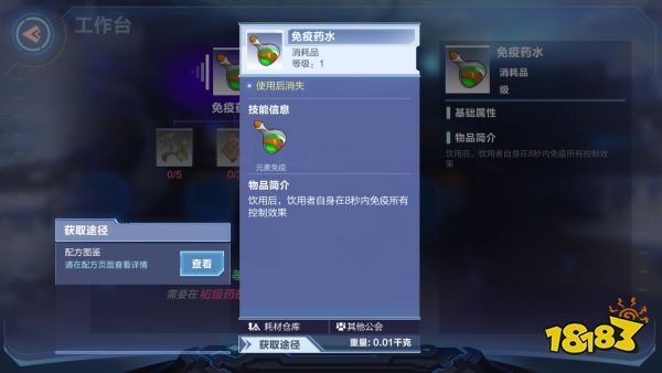 制作具有闪避率的装备可以减少收到的控制与伤害,还可以携带免疫药水,在8秒内免除所有控制效果。