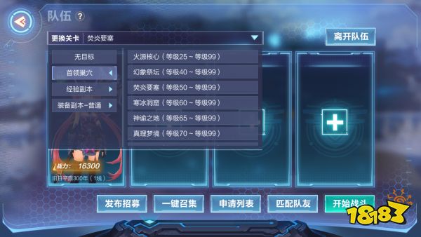 进入的方法则是达到对应的等级在左边任务列表中选择组队,进入组队大厅中能够找到首领巢穴,分别是火源核心,幻象祭坛,焚炎要塞,寒冰洞窟,神谕之地,真理梦境,深谷墓地,罪恶空间。