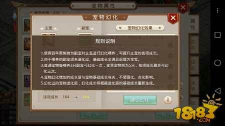 5、幻化过的宠物进化后,幻化成长根据进化后的基础成长重新生成。