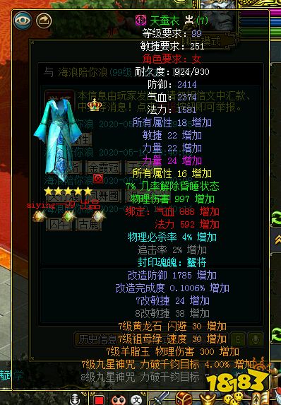 海浪陪你浪:初步打算在做一身抗装,因为区里这个等级没有卖抗装的所以只能自己做了,而且做装备花费也比较大,能做出来就行,到时候在买一个珠子,杀七星的时候就不怕被障碍了。