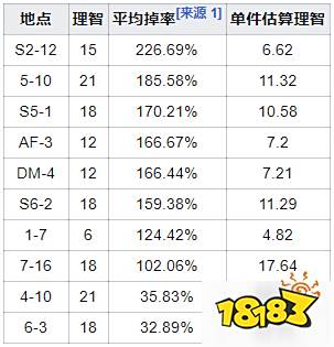 1-7:固源岩最高效率掉落关卡,平均4.8理智即可获得一个。即使是高级材料固源岩组,也推荐在1-7刷固源岩合成(单个平均24理智)。